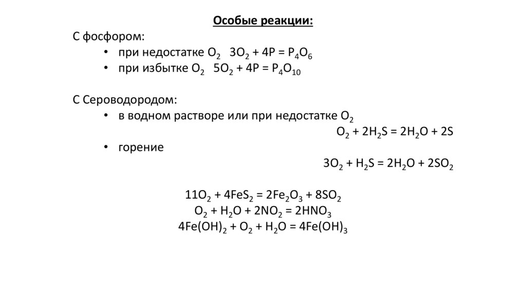 4P + 5O2 →2P2O5 (при недостатке кислорода: 4P + 3O2 → 2P2O3)