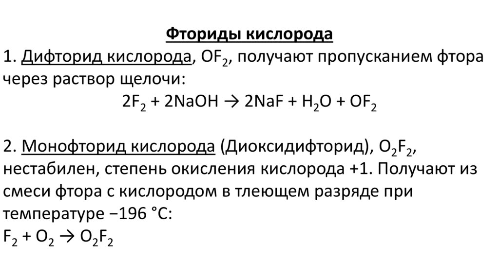 • фтор реагирует с графитом при t > 900oC: F2 + C = CF4