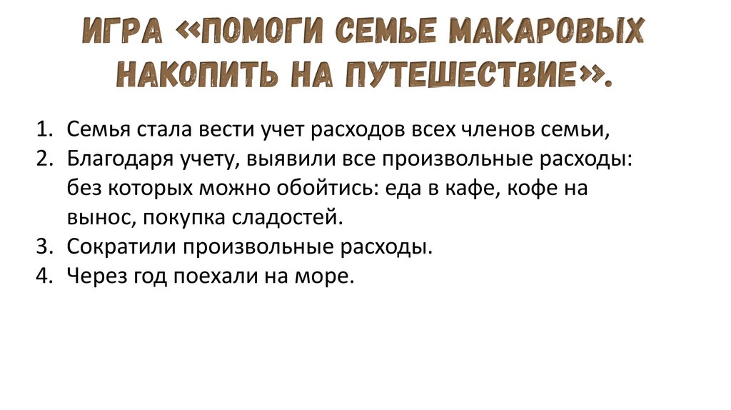 Игра «Помоги семье Макаровыхнакопить на путешествие».