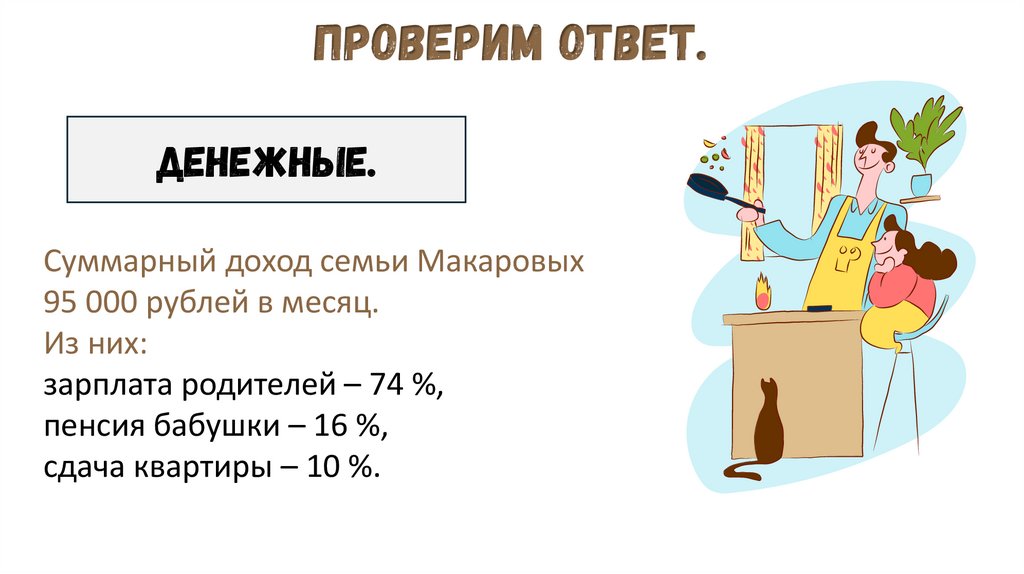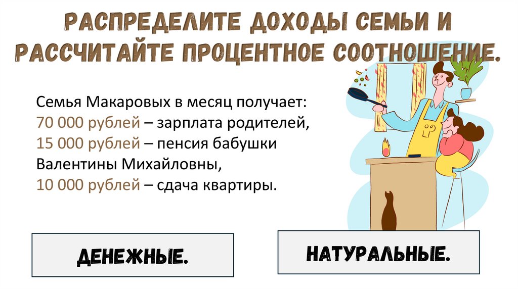 Распределите доходы семьи ирассчитайте процентное соотношение.