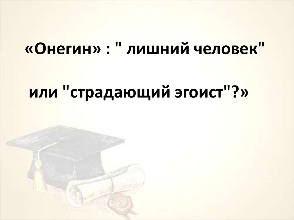 «Онегин» : " лишний человек"или "страдающий эгоист"?»