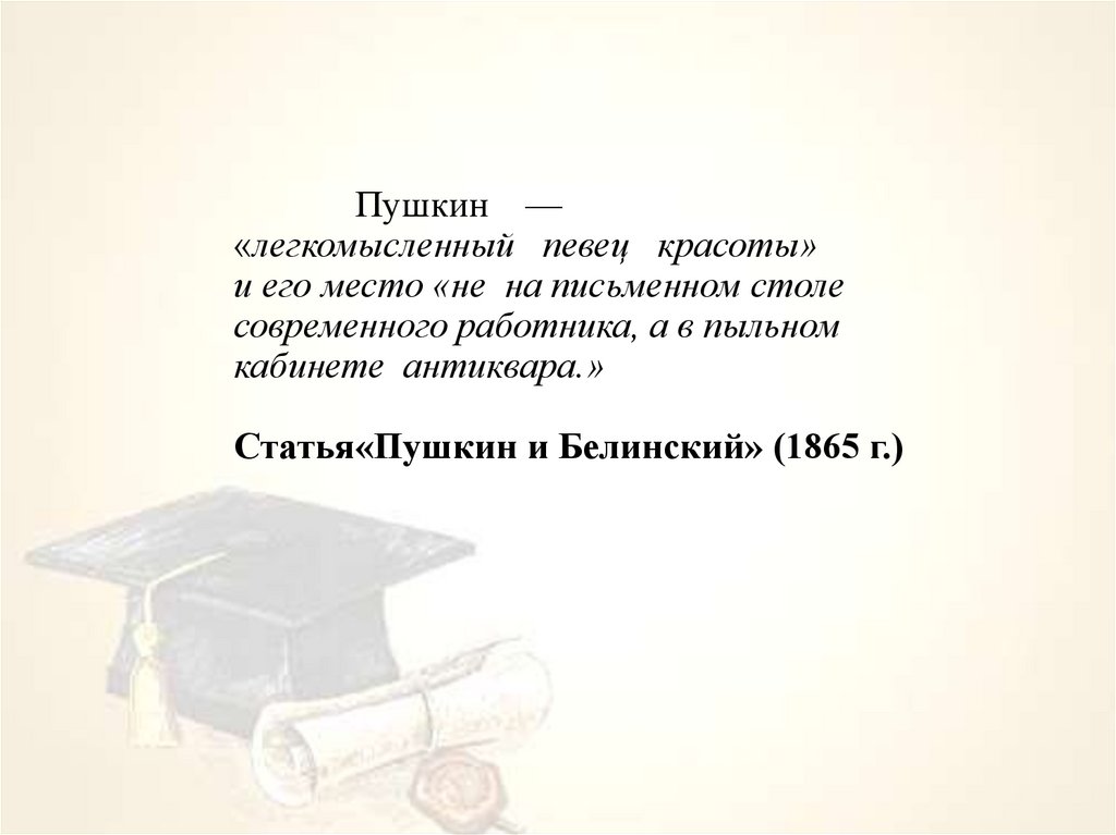 Пушкин —«легкомысленный певец красоты»