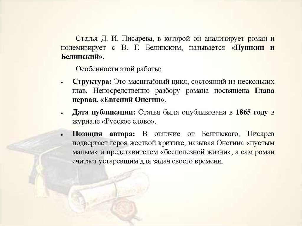 13. Оценка романа «Евгений Онегин» критиками В.Г.Белинским и Д.И. Писаревым