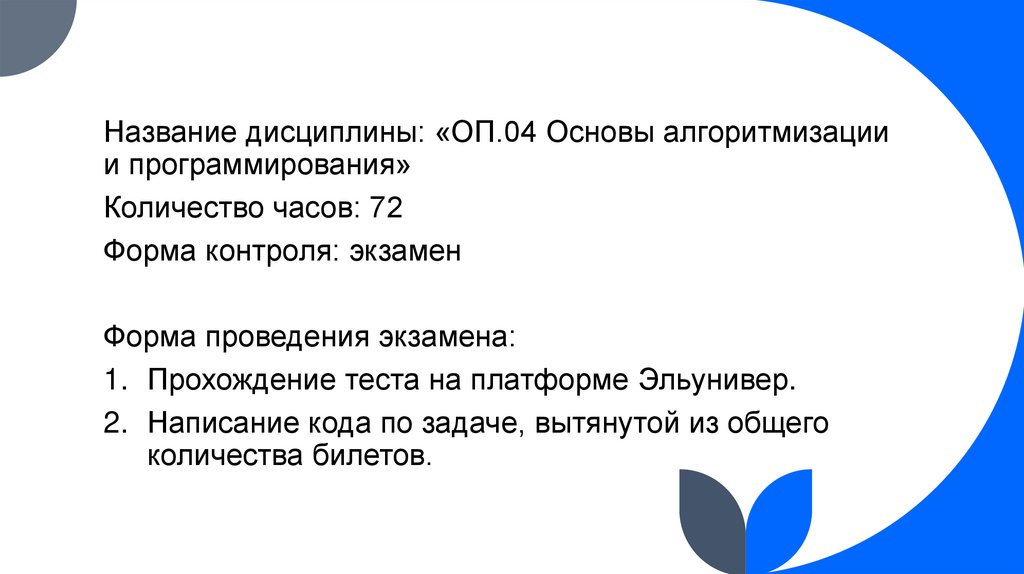 Название дисциплины: «ОП.04 Основы алгоритмизациии программирования»