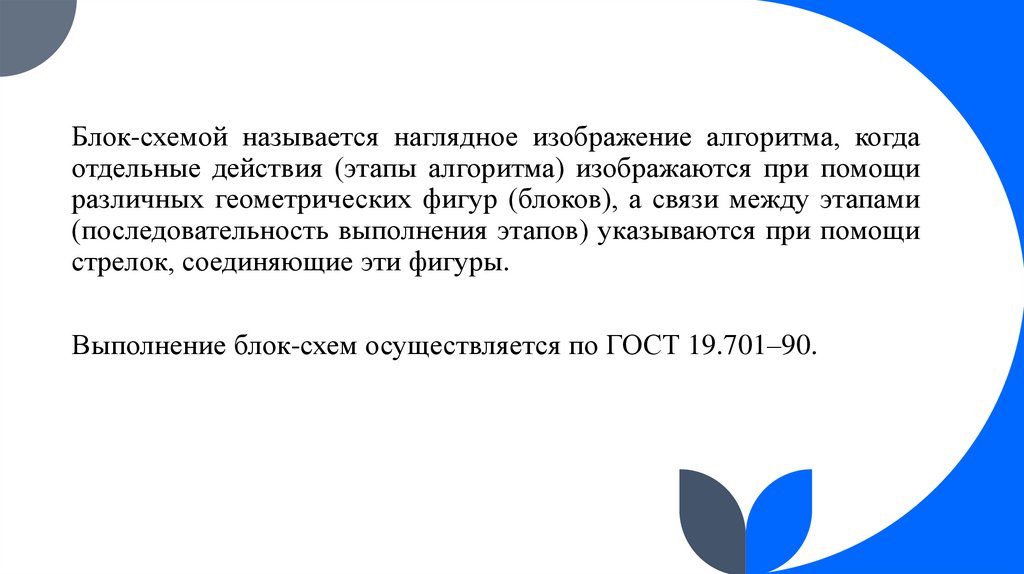 Выполнение блок-схем осуществляется по ГОСТ 19.701–90.