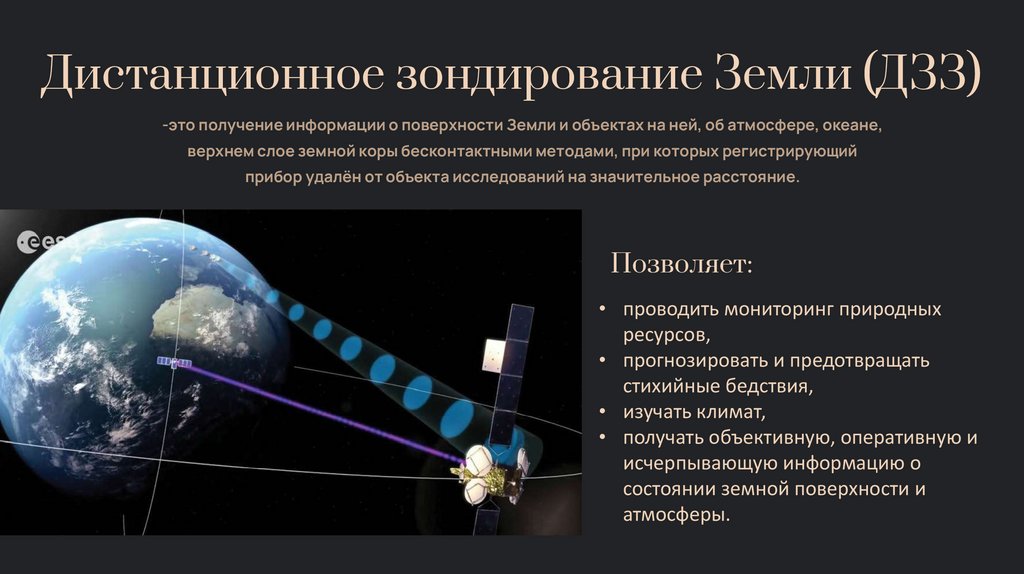 Дистанционное зондирование Земли (ДЗЗ)-это получение информации о поверхности Земли и объектах на ней, об атмосфере, океане,