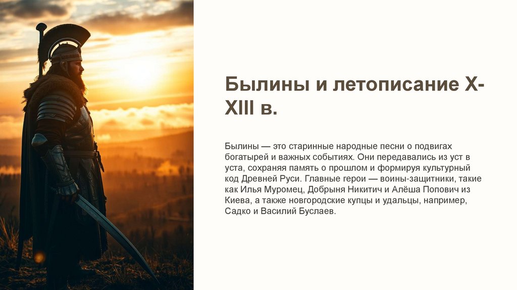 Былины и летописание XXIII в.Былины — это старинные народные песни о подвигах