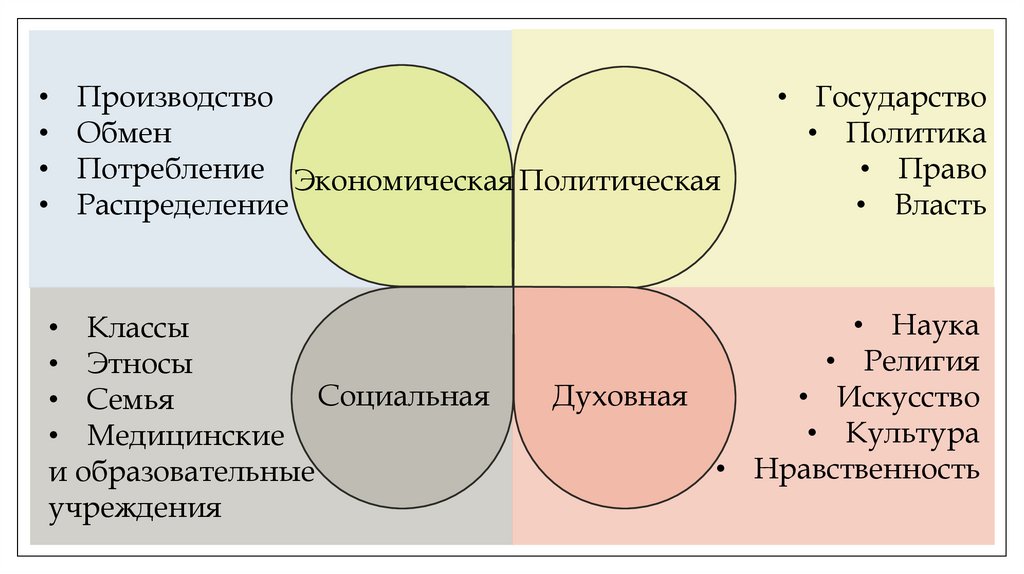 экономической, политический, социальной и духовной