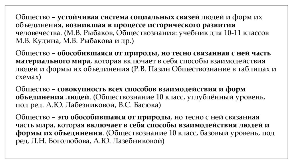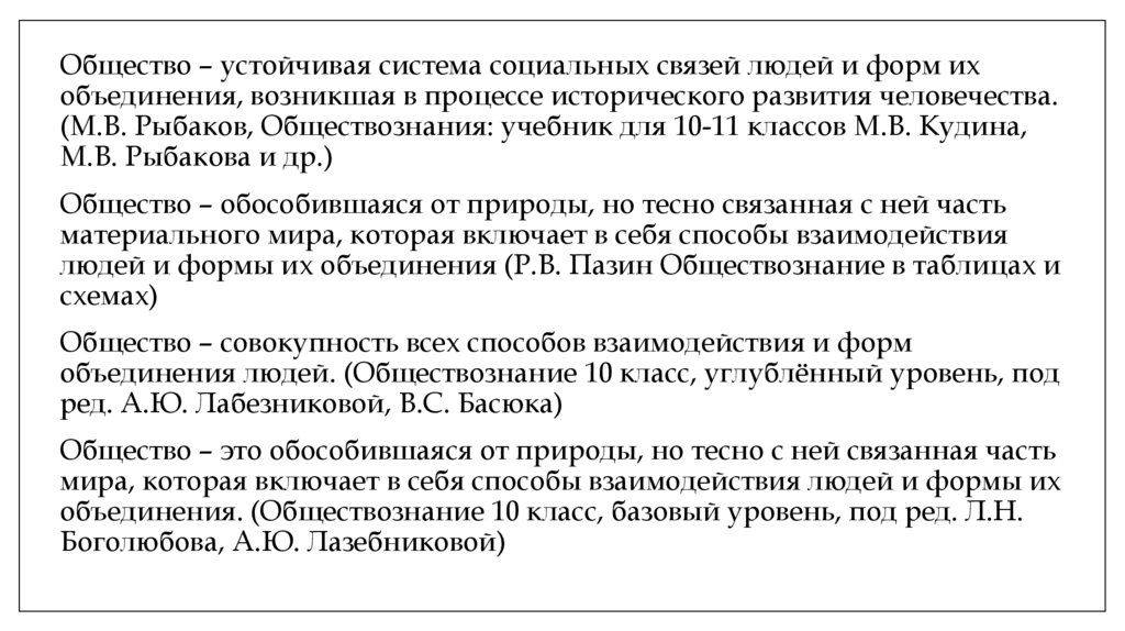 Общество – устойчивая система социальных связей людей и форм ихобъединения, возникшая в процессе исторического развития