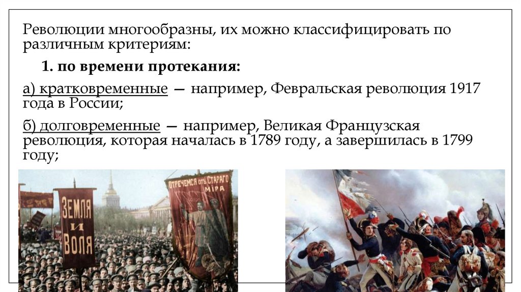 Революции многообразны, их можно классифицировать поразличным критериям: