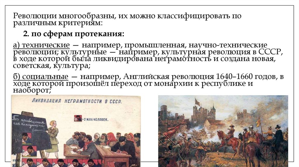 б) социальные — например, Английская революция 1640–1660 годов, в