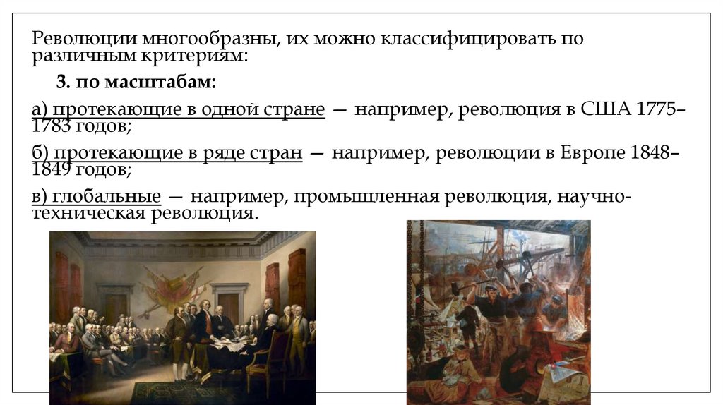 в) глобальные — например, промышленная революция, научнотехническая революция.