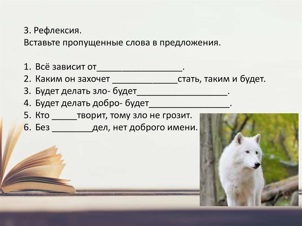 3. Рефлексия.Вставьте пропущенные слова в предложения.