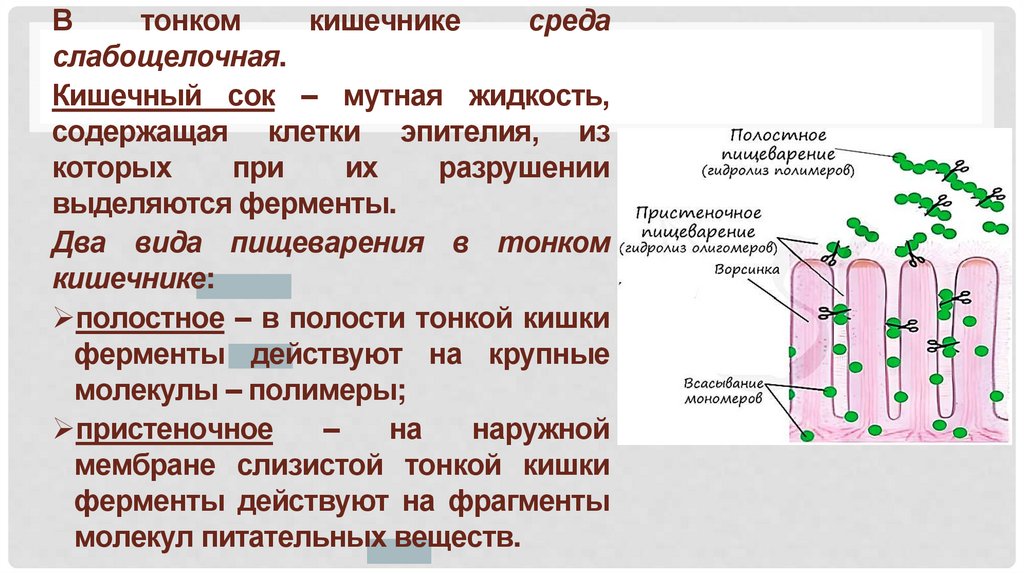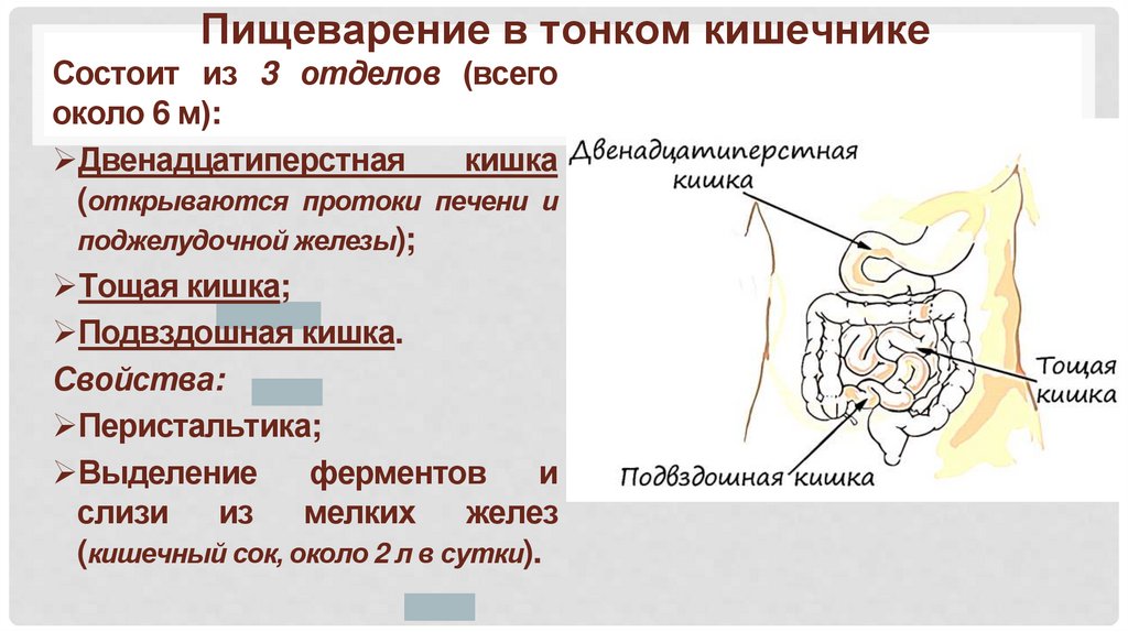 Пищеварение в тонком кишечникеСостоит из 3 отделов (всего