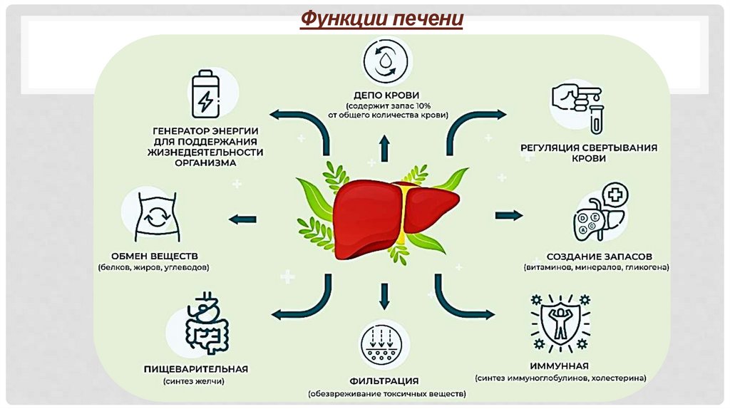 Клетки образуют жёлчь (вода, жёлчные кислоты, ферменты) –