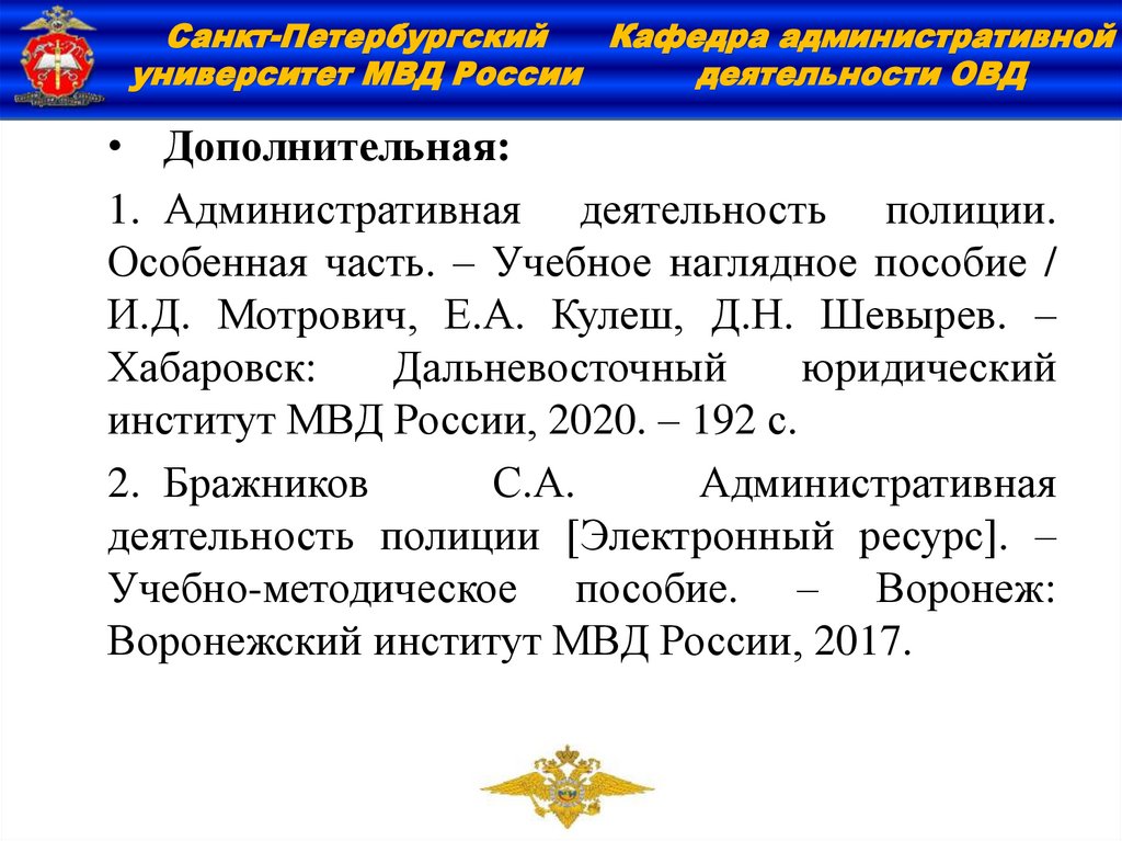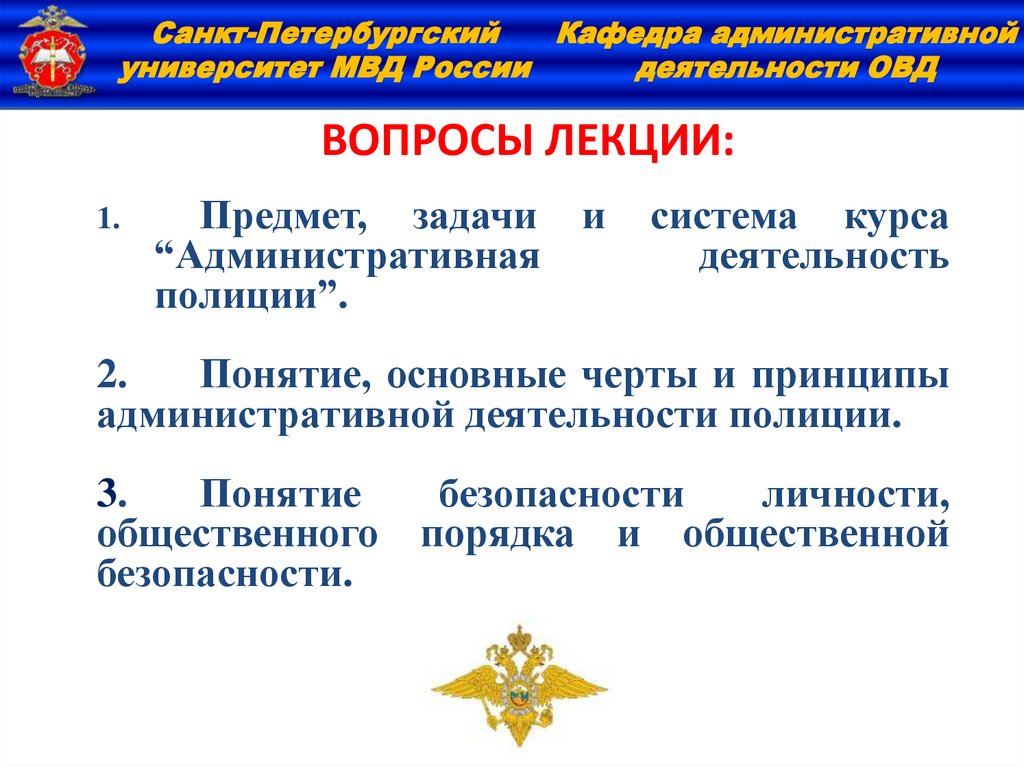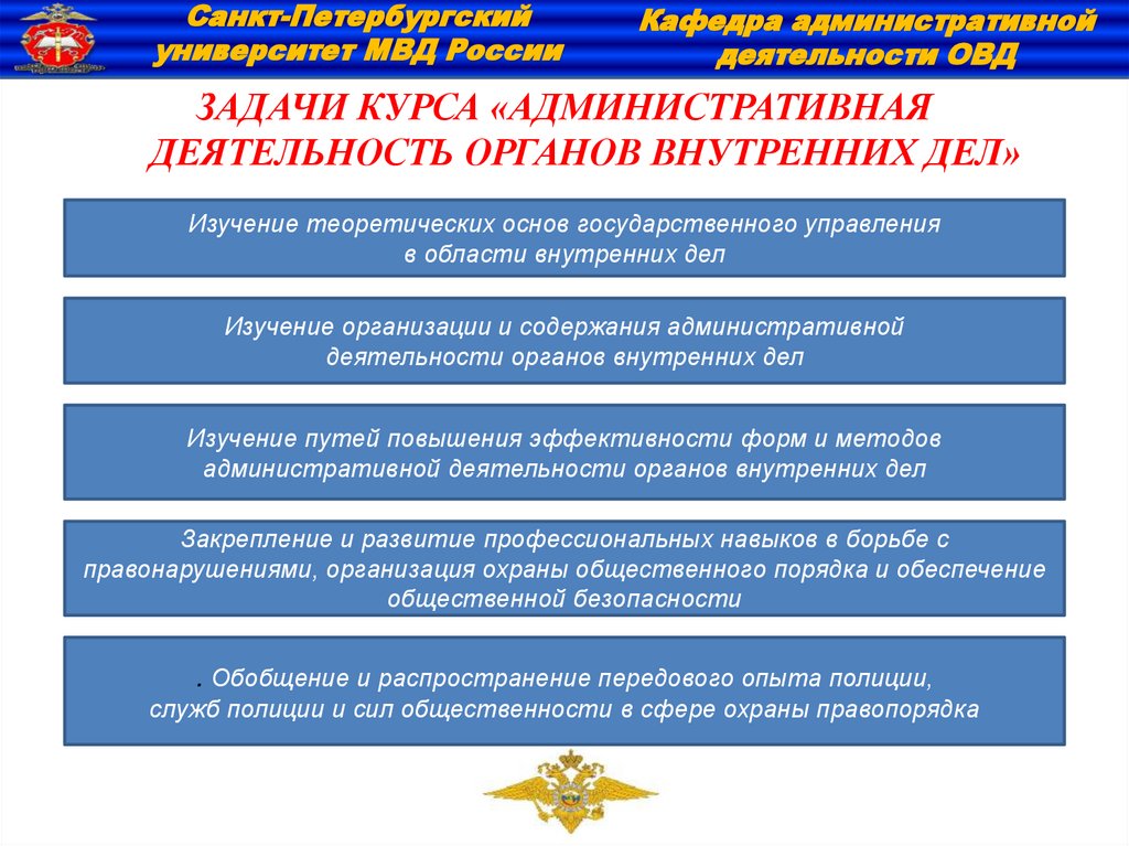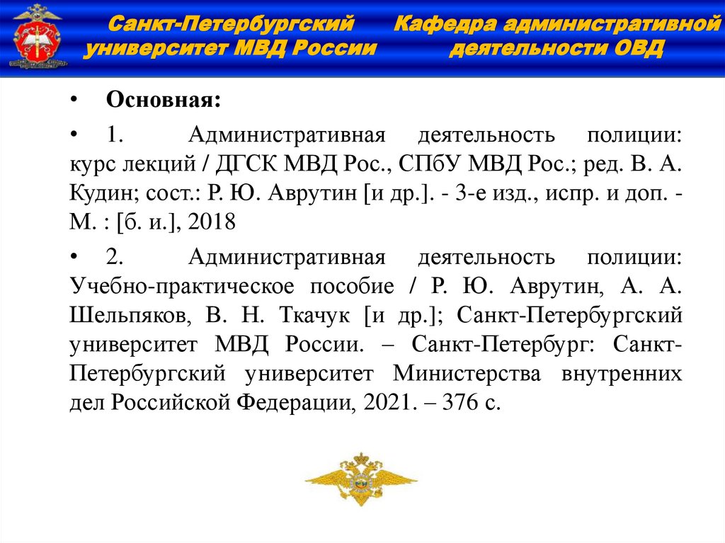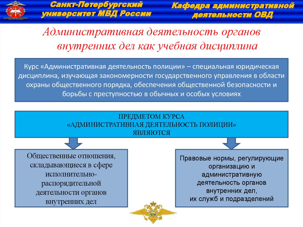 Курс «Административная деятельность полиции» – специальная юридическая