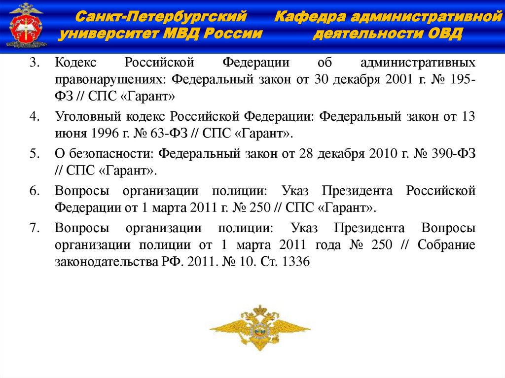 организации полиции от 1 марта 2011 года № 250 // Собрание