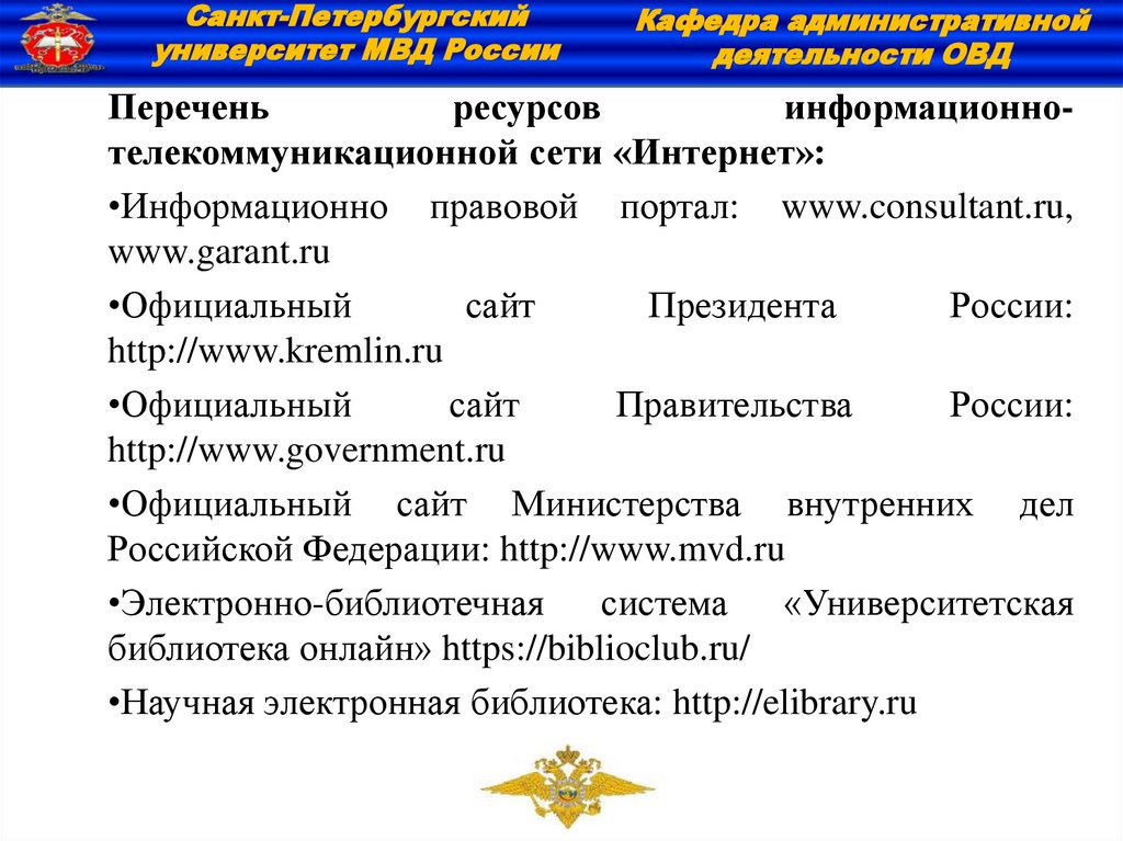 университет МВД России. – Санкт-Петербург: СанктПетербургский университет Министерства внутренних