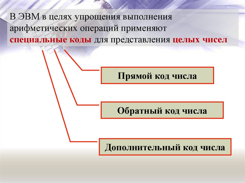специальные коды для представления целых чисел