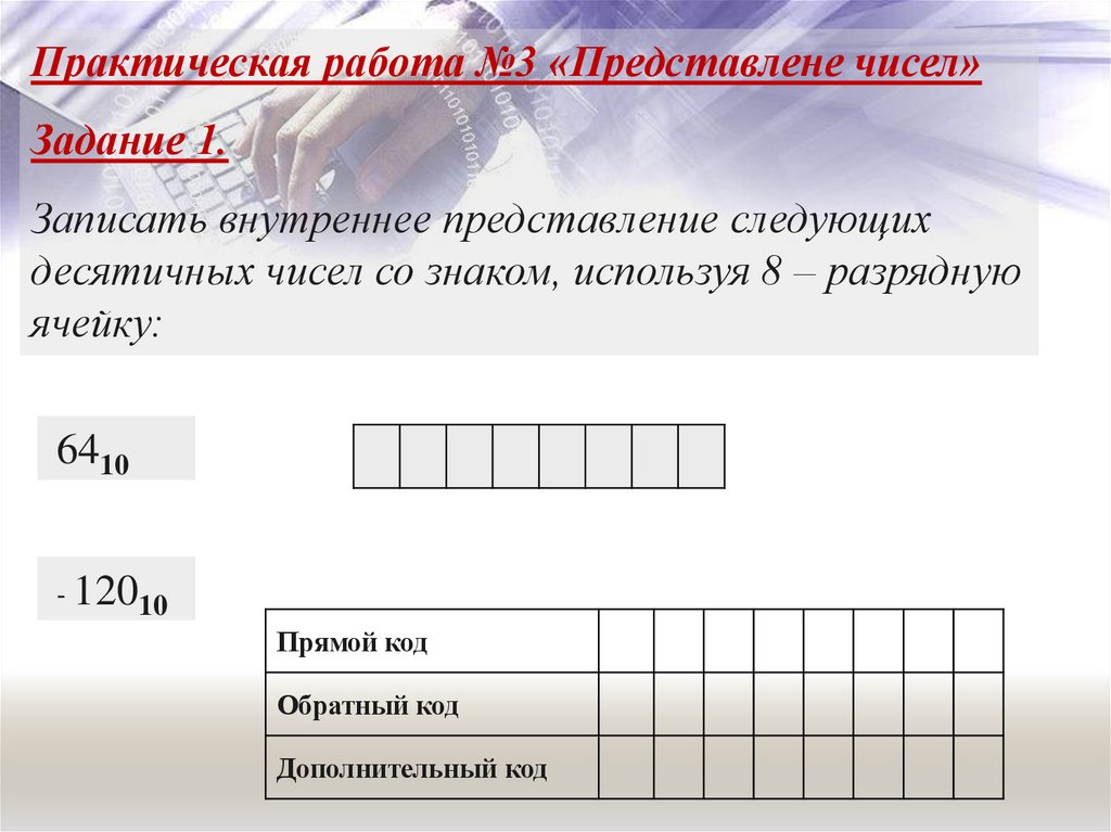 Практическая работа №3 «Представлене чисел»Задание 1.