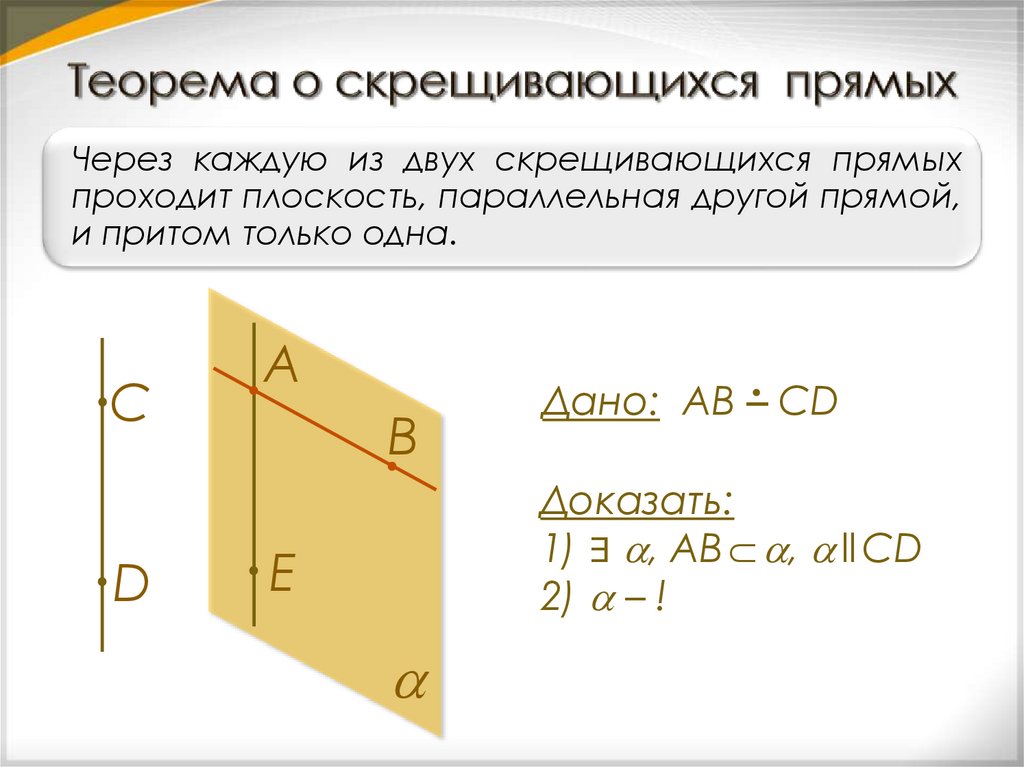 Через каждую из двух скрещивающихся прямыхпроходит плоскость, параллельная другой прямой,