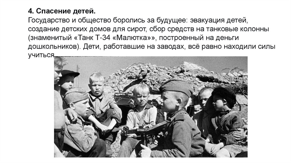 4. Спасение детей.Государство и общество боролись за будущее: эвакуация детей,