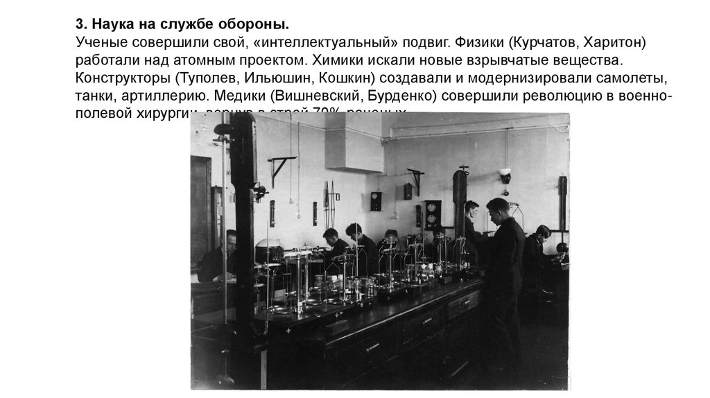 3. Наука на службе обороны.Ученые совершили свой, «интеллектуальный» подвиг. Физики (Курчатов, Харитон)