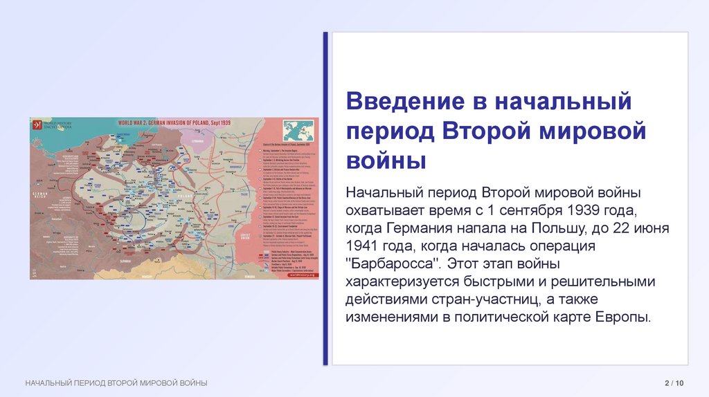 Введение в начальныйпериод Второй мировой
