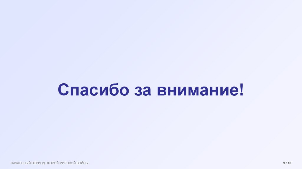 Спасибо за внимание!НАЧАЛЬНЫЙ ПЕРИОД ВТОРОЙ МИРОВОЙ ВОЙНЫ
