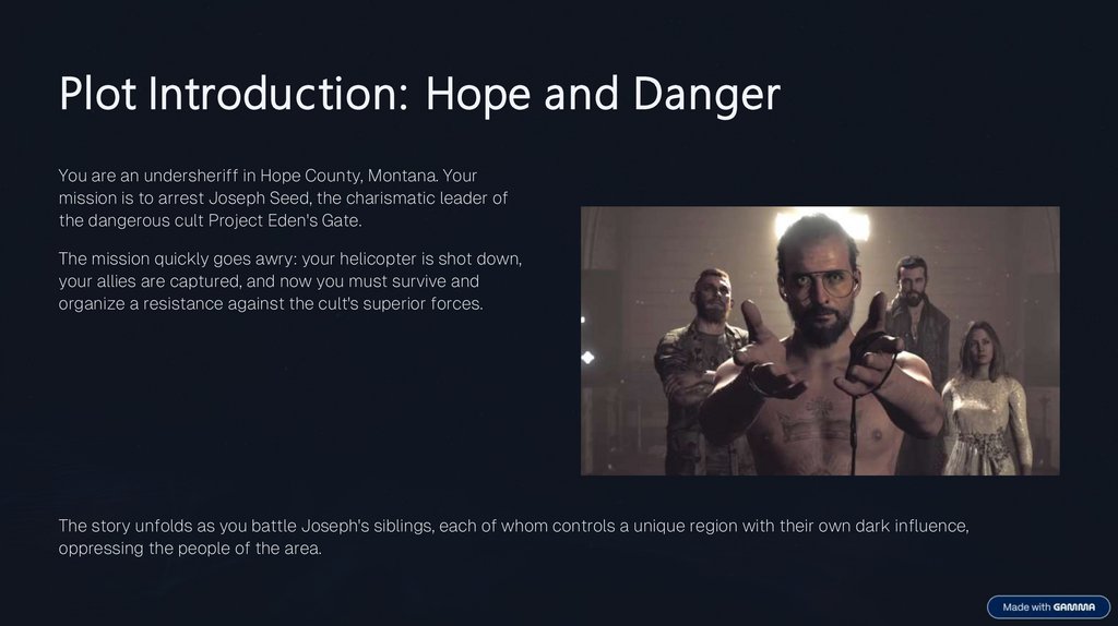Plot Introduction: Hope and DangerYou are an undersheriff in Hope County, Montana. Your
