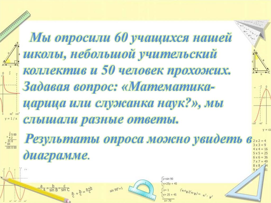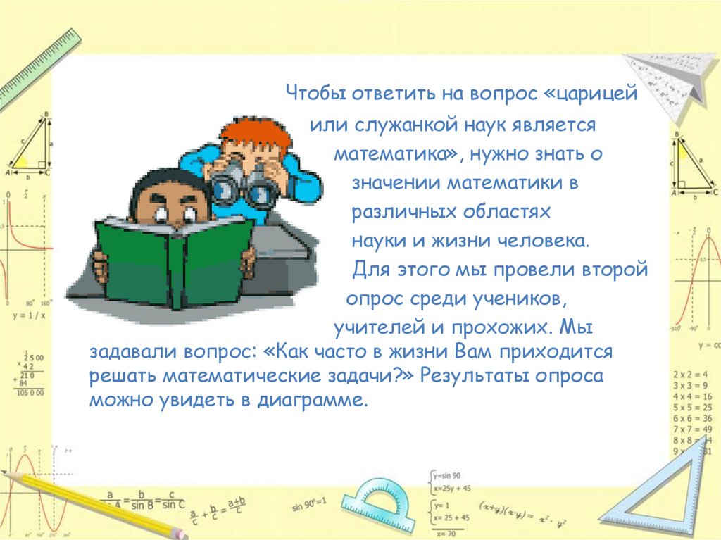 Задавая вопрос: «Математикацарица или служанка наук?», мы