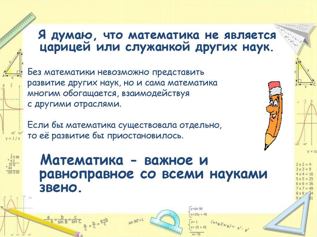 Я думаю, что математика не являетсяцарицей или служанкой других наук.