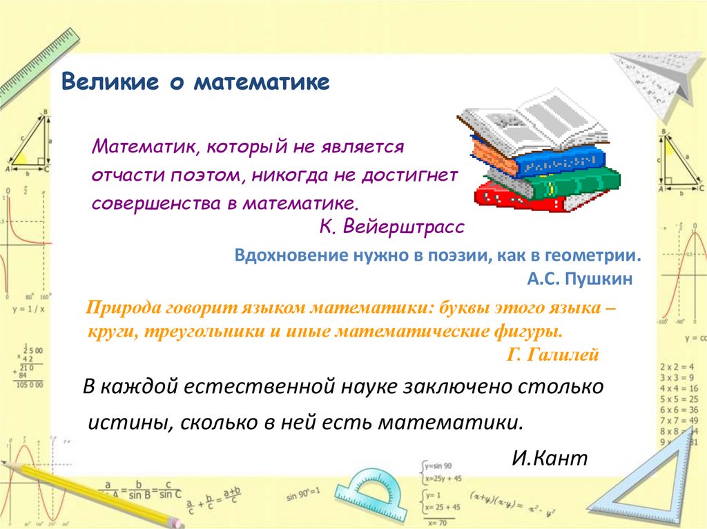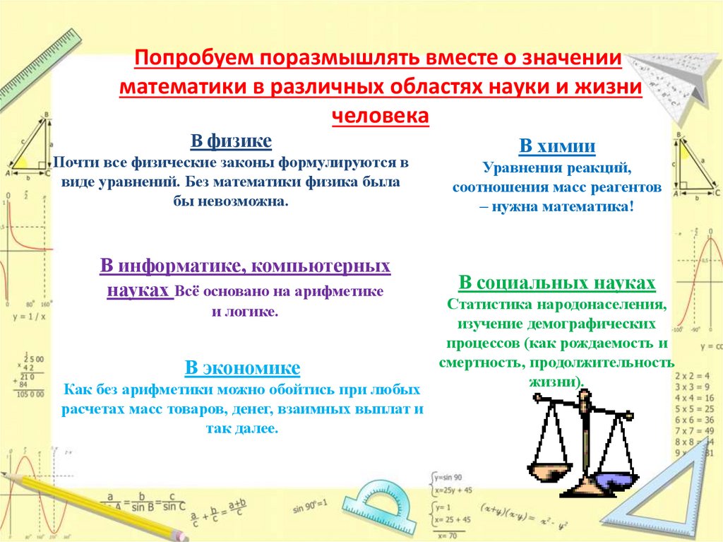 Попробуем поразмышлять вместе о значенииматематики в различных областях науки и жизни