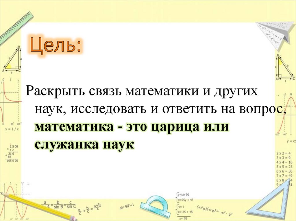 Раскрыть связь математики и другихнаук, исследовать и ответить на вопрос,