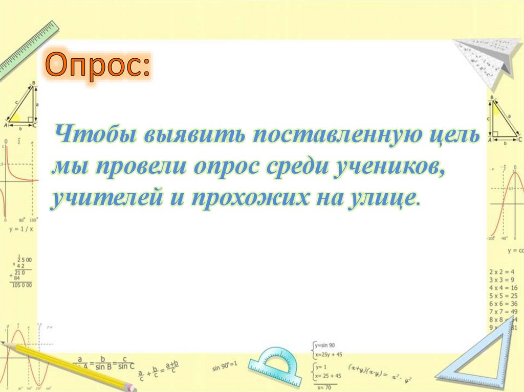 Чтобы выявить поставленную цельмы провели опрос среди учеников,