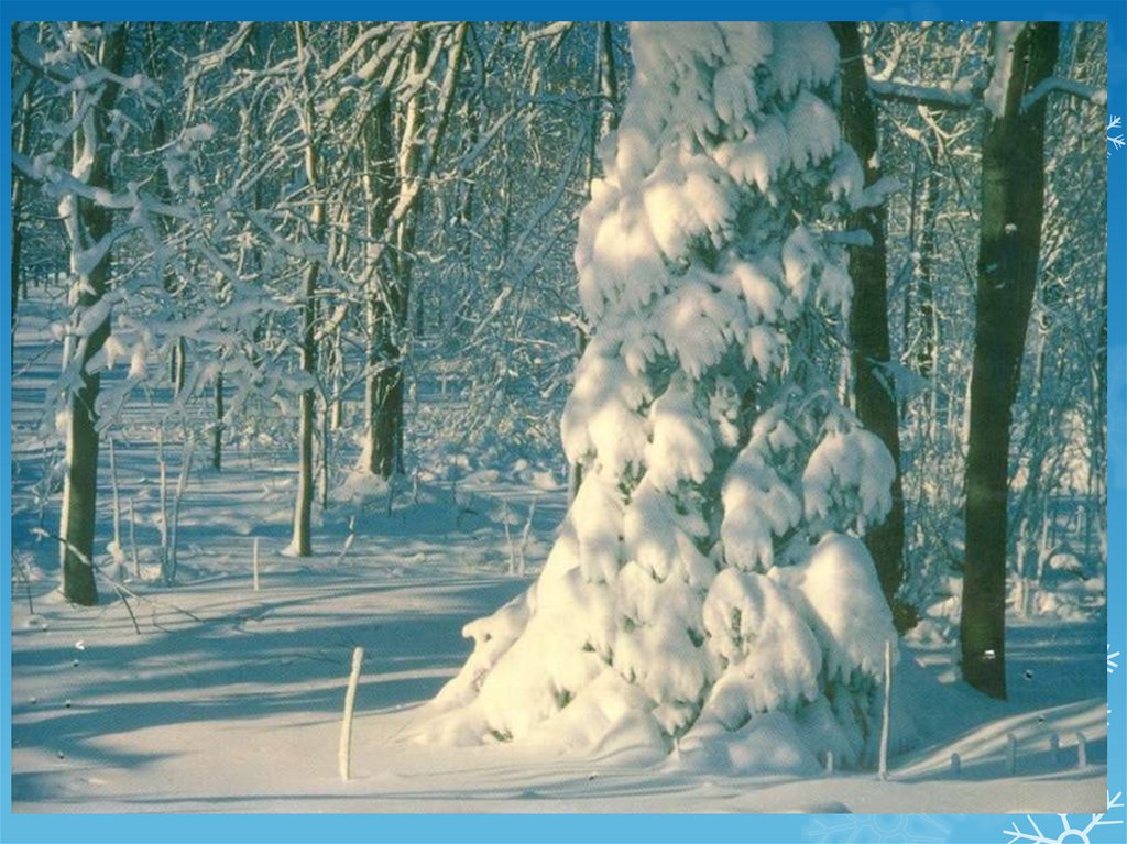Снежная пороша. В лесу очень тихо и тактепло, что только вот не тает. Деревья