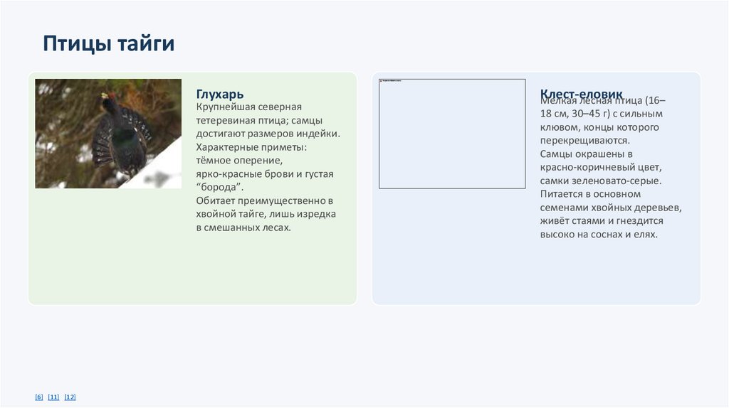 Типичные виды: глухарь, клест-еловик,