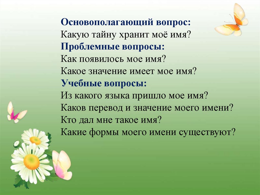 Основополагающий вопрос:Какую тайну хранит моё имя?