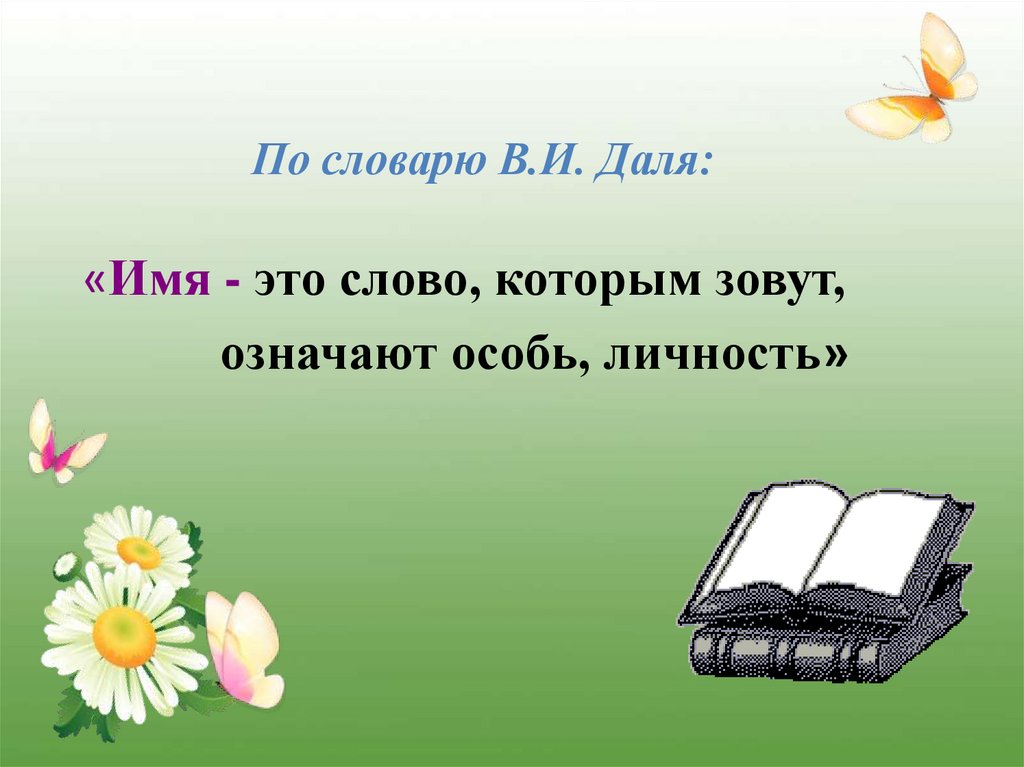 По словарю В.И. Даля:«Имя - это слово, которым зовут,