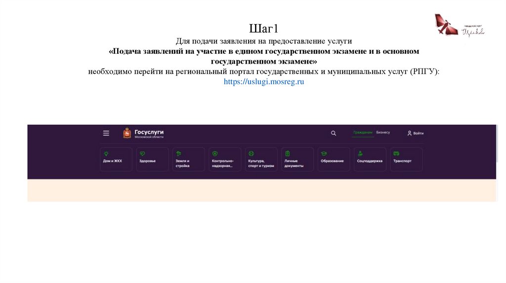 Шаг1Для подачи заявления на предоставление услуги