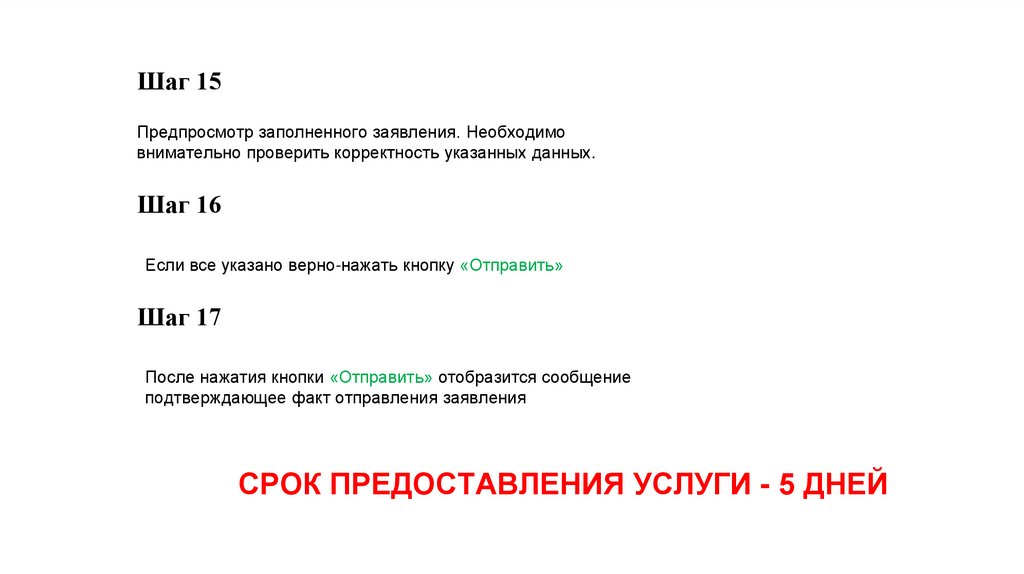 Шаг 15Предпросмотр заполненного заявления. Необходимо