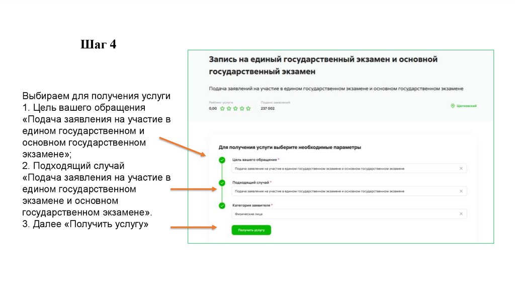Шаг 4Выбираем для получения услуги