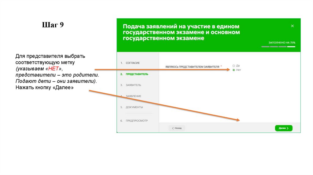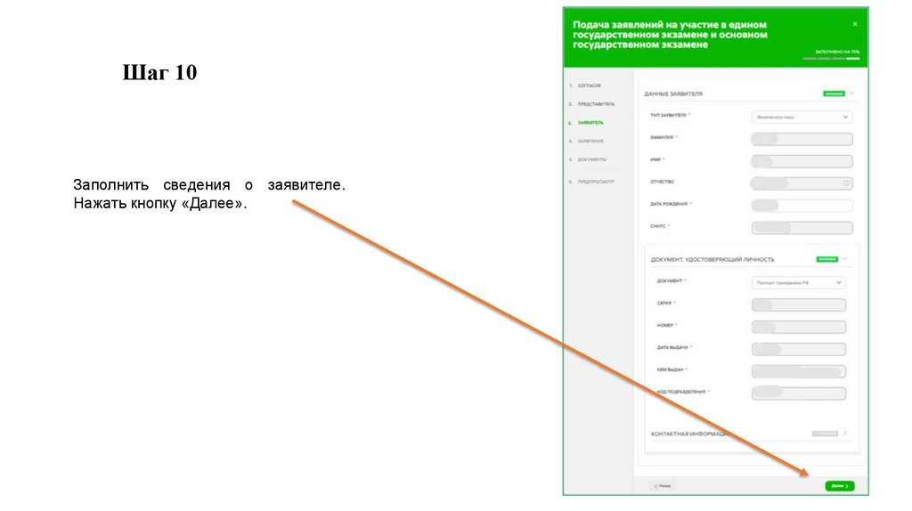 Шаг 10Заполнить сведения о заявителе.