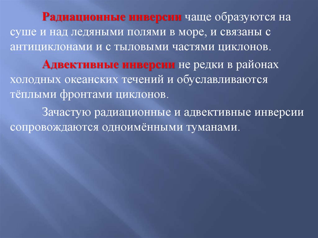 Радиационные инверсии чаще образуются насуше и над ледяными полями в море, и связаны с