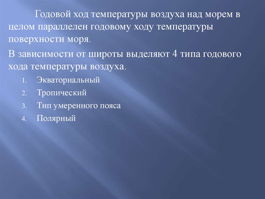 Годовой ход температуры воздуха над морем вцелом параллелен годовому ходу температуры