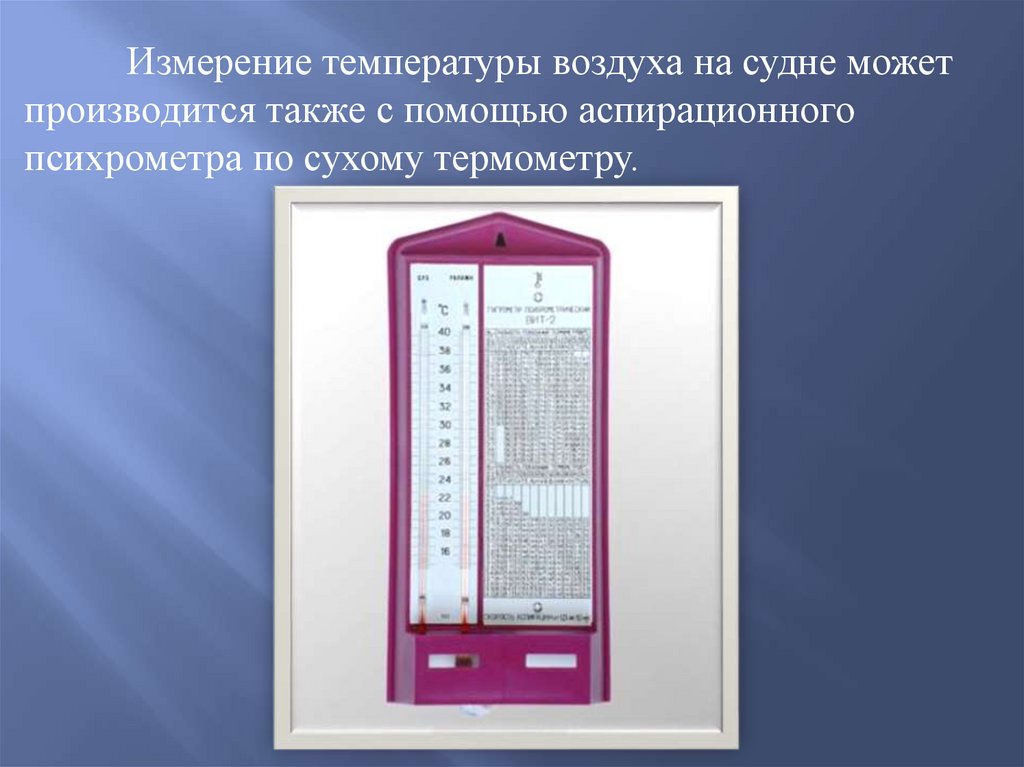 Измерение температуры воздуха на судне можетпроизводится также с помощью аспирационного
