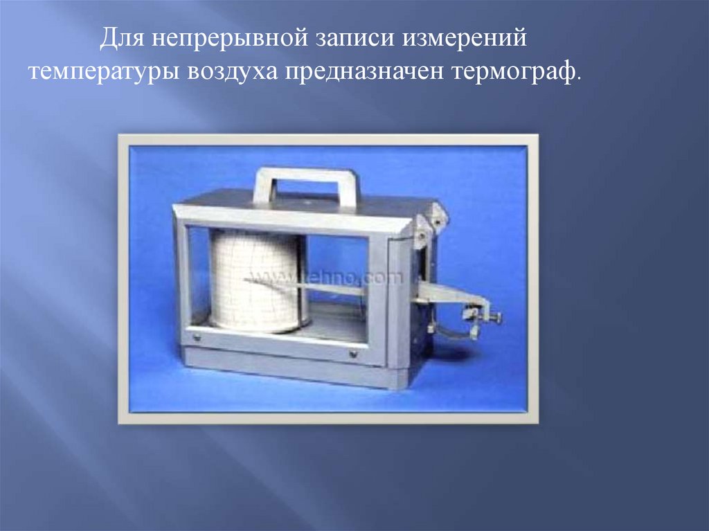 Для непрерывной записи измеренийтемпературы воздуха предназначен термограф.