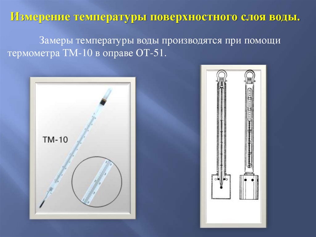 Измерение температуры поверхностного слоя воды.Замеры температуры воды производятся при помощи