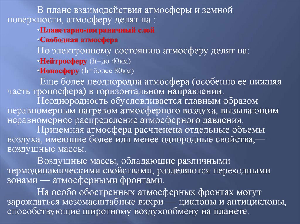 Атмосфера земли по физическим свойствам не