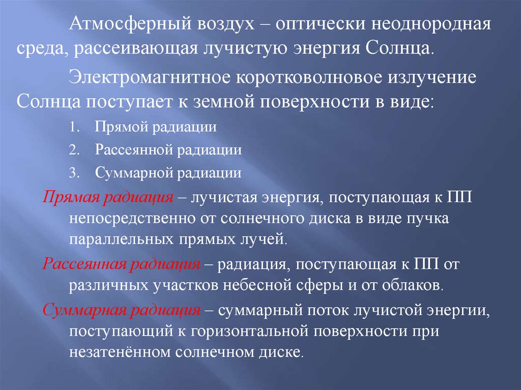 1. Коротковолновая радиация Солнца проникает в воду